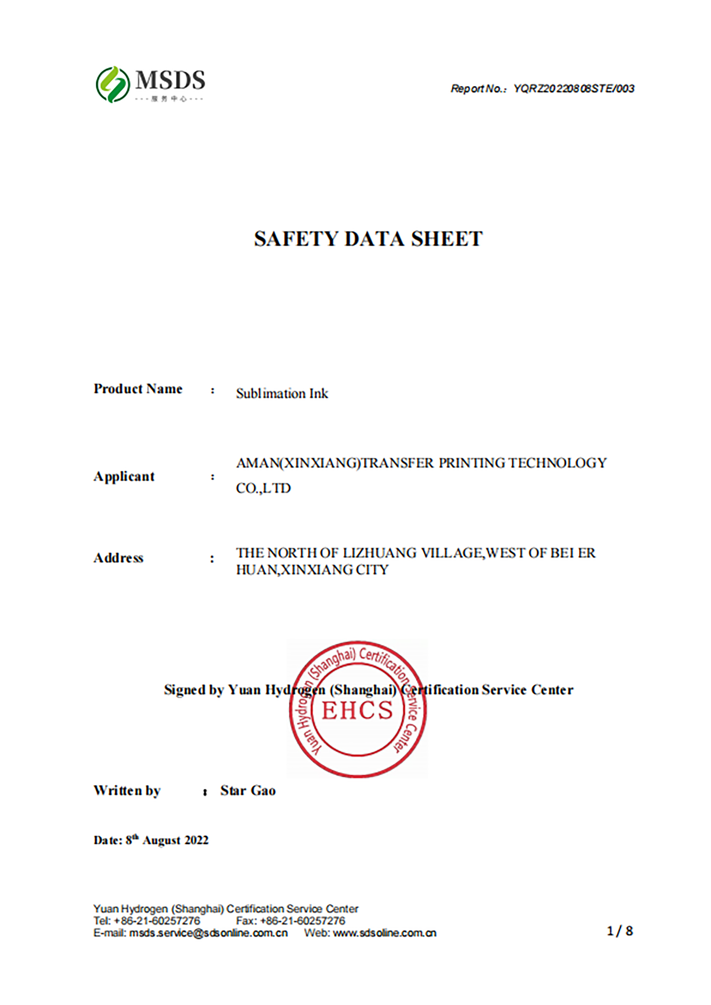 MSDS認(rèn)證書