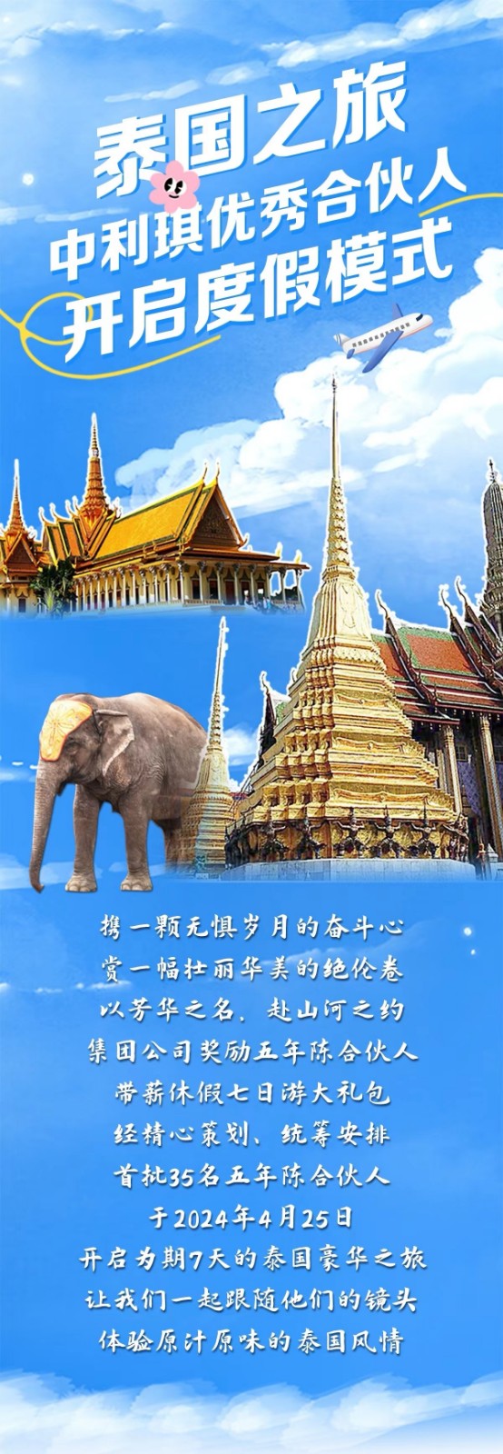 經(jīng)精心策劃、統(tǒng)籌安排,首批35名五年陳合伙人于2024年4月25日開啟為期7天的泰國豪華之旅!